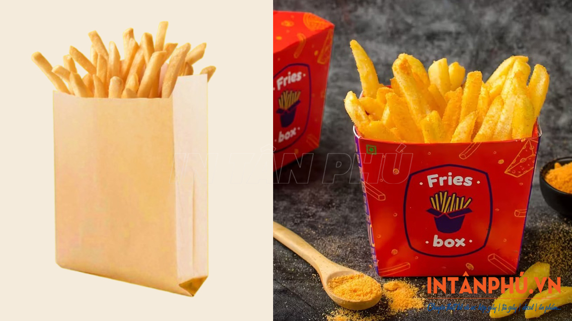 Túi giấy đựng khoai chiên, gà chiên thông dụng