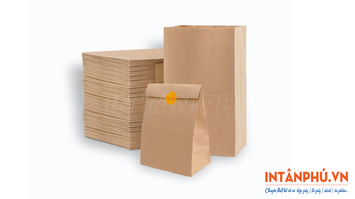 Giấy Kraft là loại giấy nguyên sinh được sản xuất từ gỗ thân mềm, có màu vàng nâu tự nhiên, chưa qua xử lý tẩy trắng nên đảm bảo an toàn khi tiếp xúc trực tiếp với thực phẩm nên đây là chất liệu được nhiều cơ sở kinh doanh ưa chuộng để in túi giấy thực phẩm như túi giấy đựng khoai tây chiên, túi đựng gà rán, túi giấy bánh tráng nướng, …