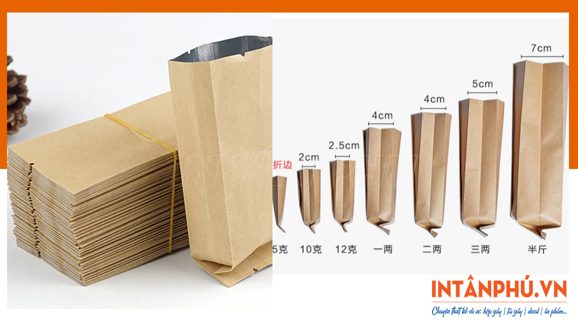 Kích thước túi giấy hạt dẻ thường được thiết kế dựa trên trọng lượng hạt dẻ được đóng gói nhằm tối ưu chi phí và đảm bảo tính thẩm mỹ. Một số kích thước túi thông dụng hiện nay như:
