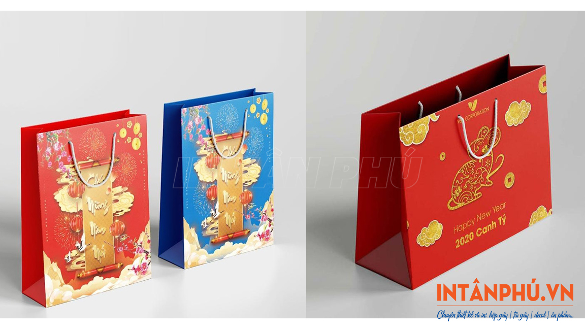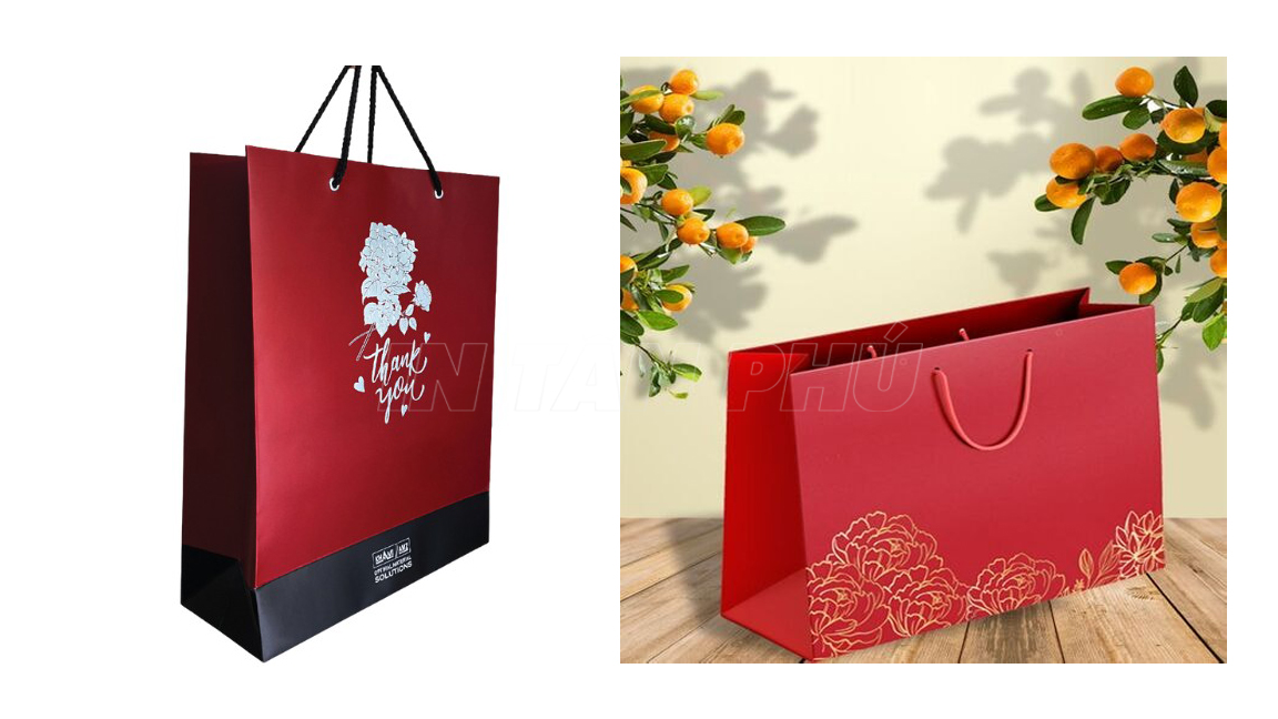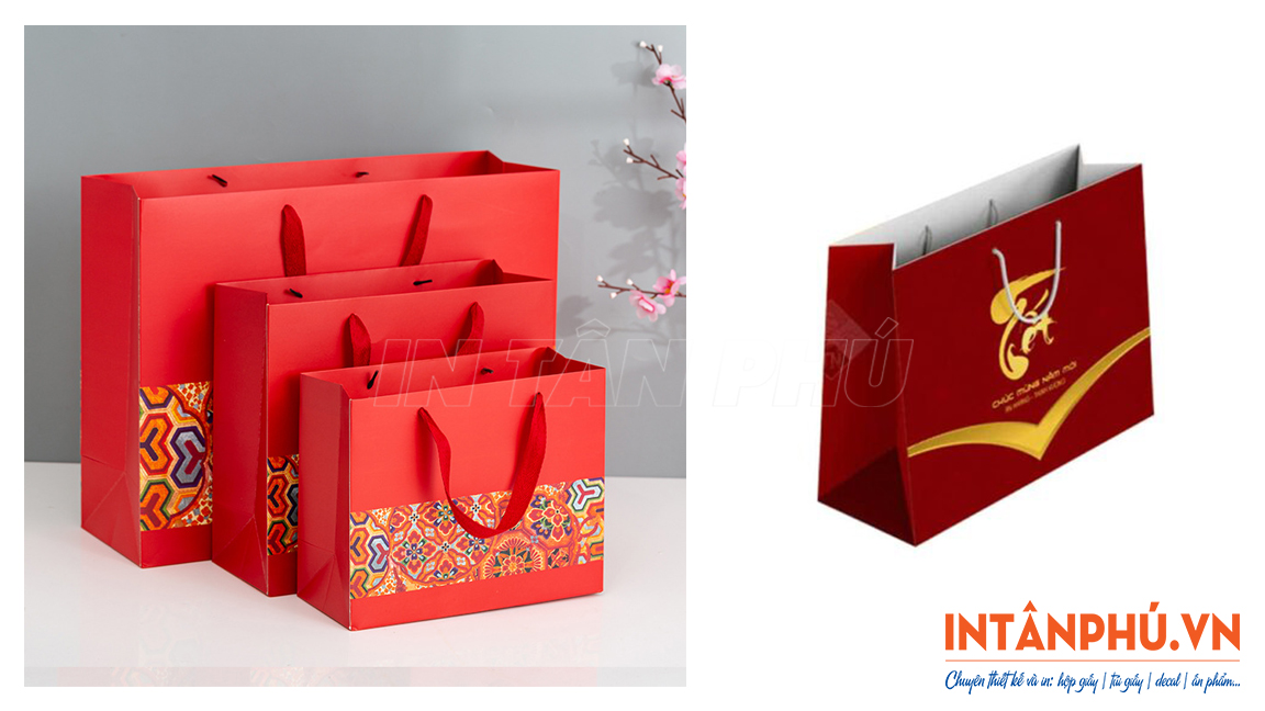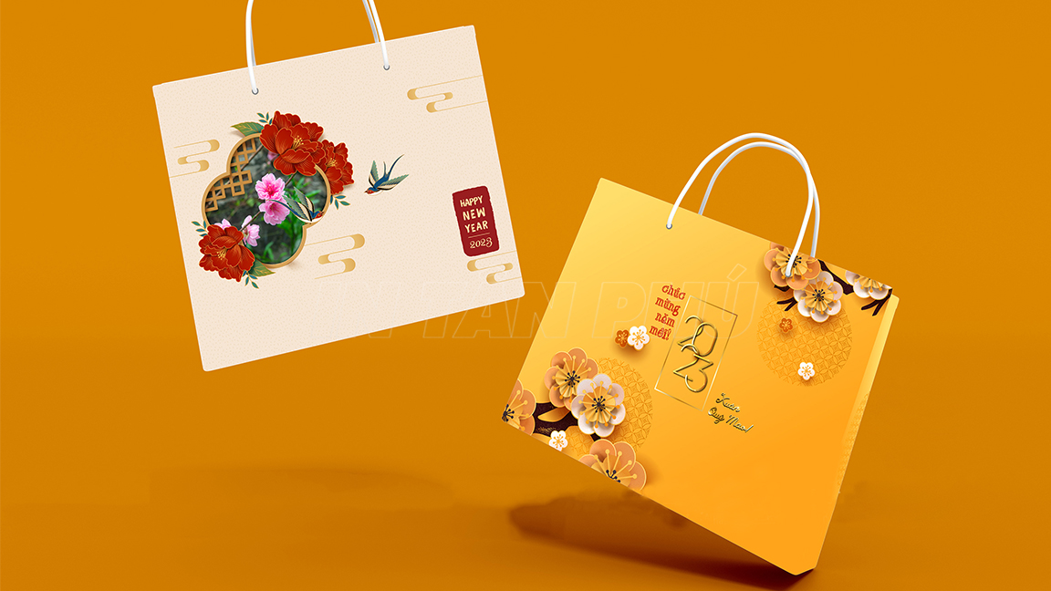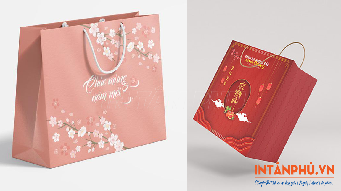 Túi giấy đựng quà Tết được thiết kế với nhiều kiểu dáng và kích thước khác nhau để đáp ứng nhu cầu đa dạng của khách hàng: