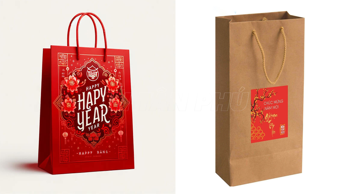 - Túi giấy đựng quà Tết có quai xách hai bên;