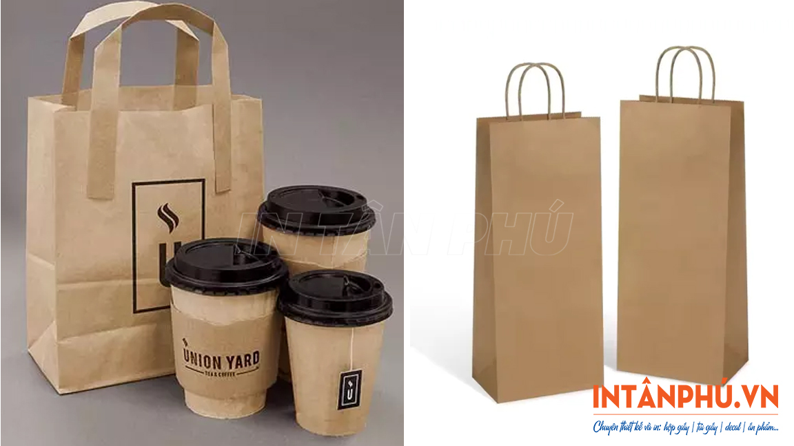 - Giấy Kraft: Sở hữu đặc tính dẻo dai, độ bền cao, chịu lực tốt, chống thấm tương đối, giá hợp lý, thân thiện môi trường. Giấy Kraft nâu tạo cảm giác mộc mạc, còn Kraft trắng mang đến vẻ sang trọng, đáp ứng nhiều nhu cầu sử dụng và phong cách thương hiệu.