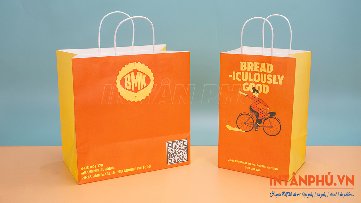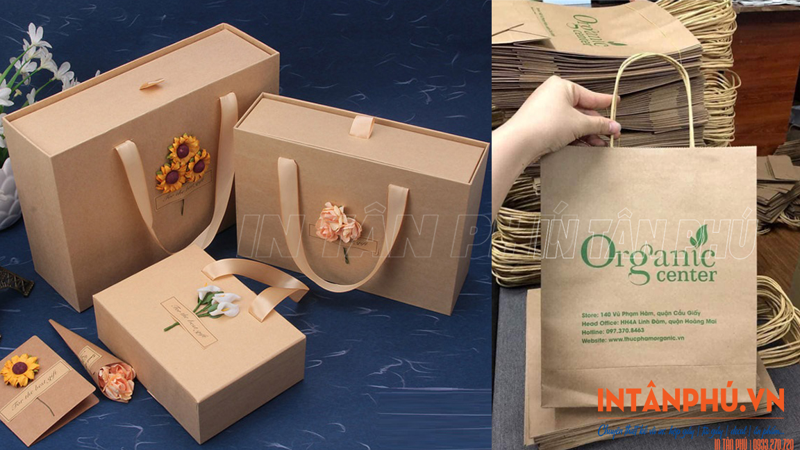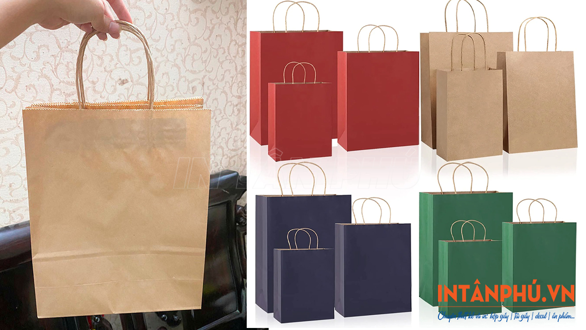 In túi giấy Kraft có quai xách giá rẻ, thiết kế theo yêu cầu tại In Tân Phú