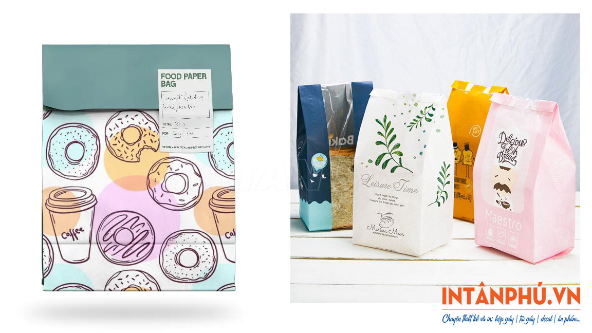 - Túi giấy đựng trà, túi đựng cà phê: Giúp sản phẩm giữ hương vị, đồng thời tạo hình ảnh chuyên nghiệp cho thương hiệu.