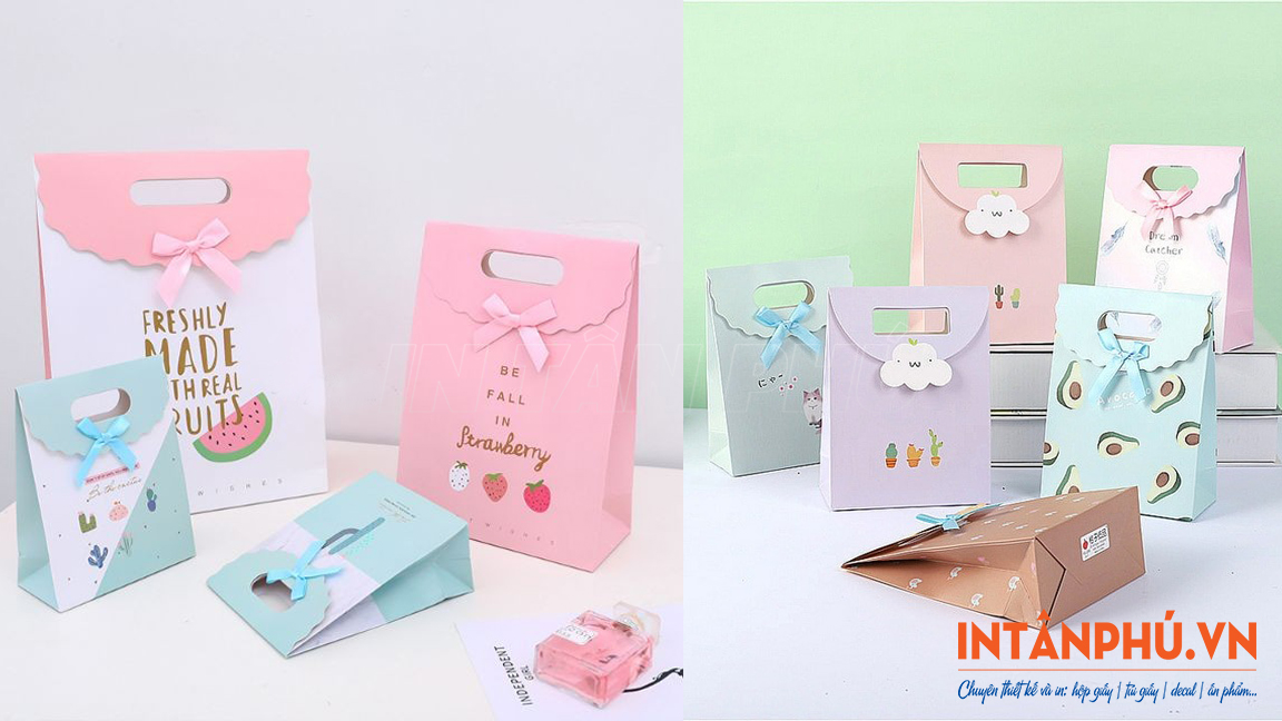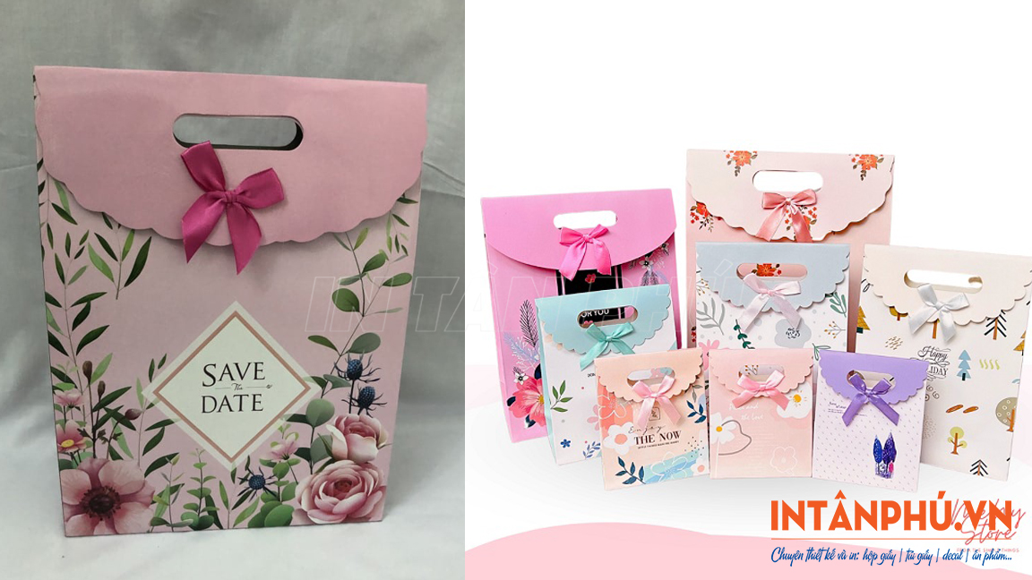 Túi giấy nắp gập có nơ, thiết kế đẹp