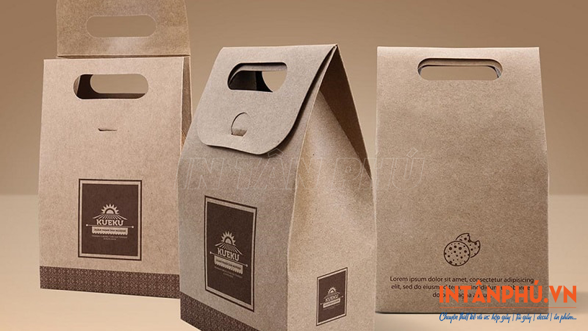 - Giấy Kraft: Chất liệu Kraft ngày càng được ưa chuộng trong in ấn bao bì từ túi giấy Kraft, hộp giấy Kraft nhờ chi phí thấp, thân thiện với môi trường. Bên cạnh đó, màu nâu vàng mộc mạc, gần gũi cùng với tính dẻo dai và chống rách tốt chính là những ưu điểm nổi bật cho các cơ sở kinh doanh theo xu hướng vintage hay ưa chuộng những mẫu túi đơn giản, không cần in ấn quá cầu kỳ.