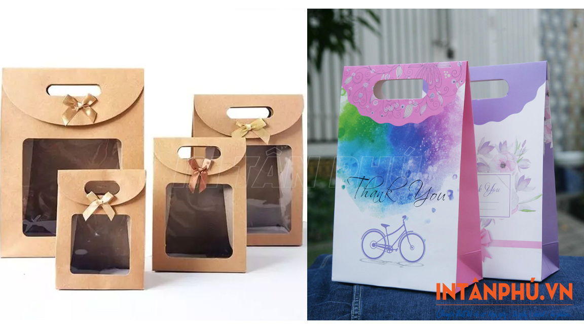 - Túi giấy nắp gập đục lỗ cầm tay.