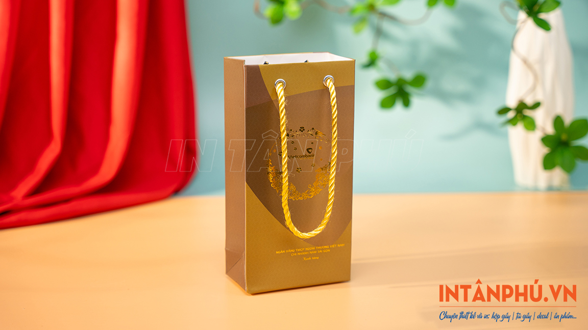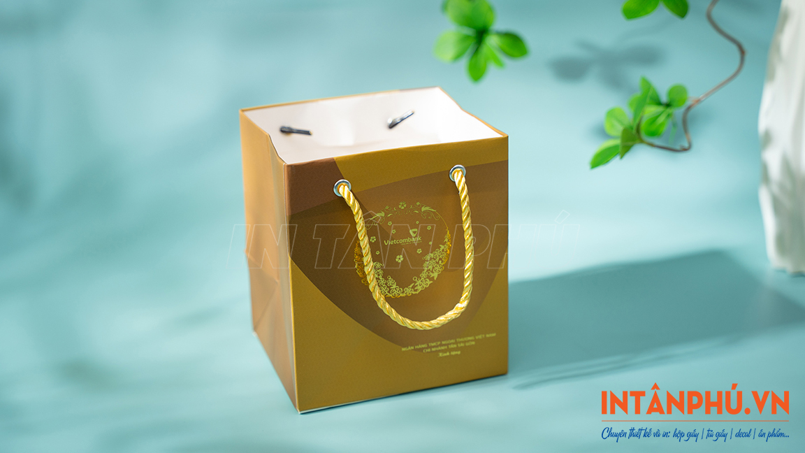 Túi giấy Vietcombank đáy vuông, ép kim sang trọng