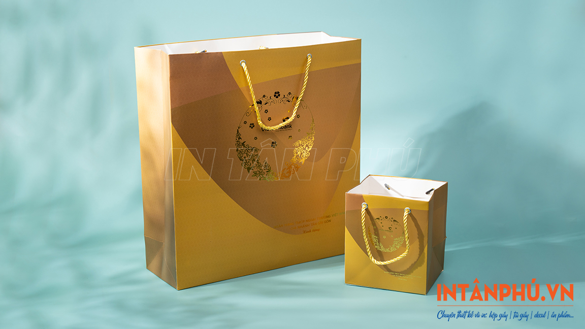 Sau đây là một số mẫu túi giấy ngân hàng được thiết kế đẹp mắt, chuyên nghiệp, mang đặc trưng thương hiệu với đa dạng kiểu dáng tại In Tân Phú: