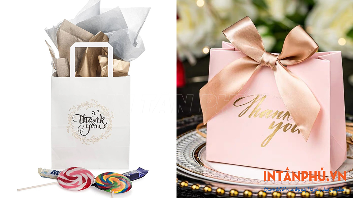 - Giá trị khi sử dụng làm túi quà tặng: Với cá nhân, túi giấy Thank You được dùng để đựng quà sinh nhật, quà cảm ơn hoặc quà tặng sự kiện. Một chiếc túi đẹp giúp món quà trở nên ý nghĩa và trân trọng hơn.