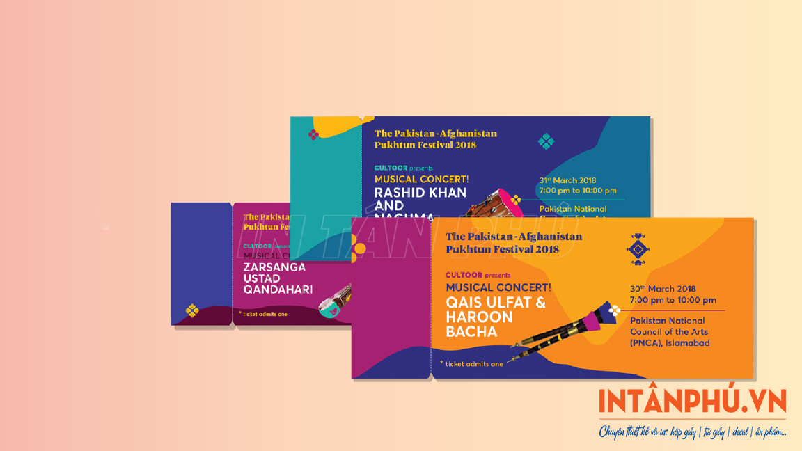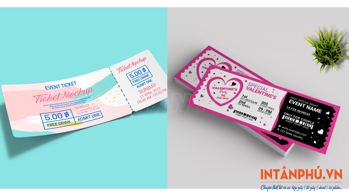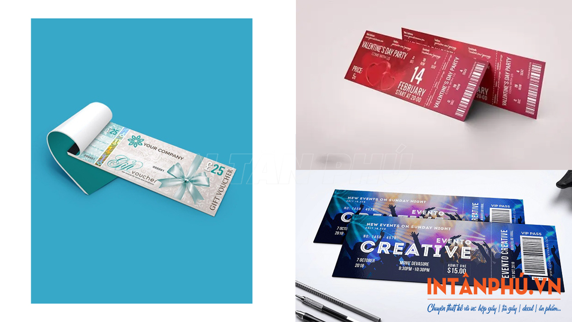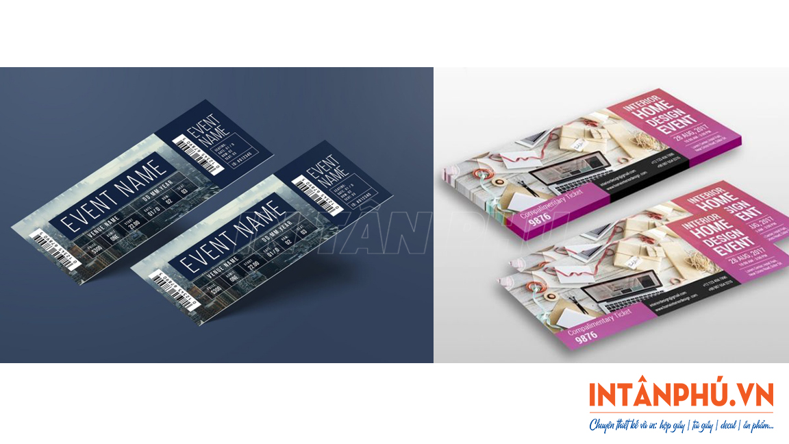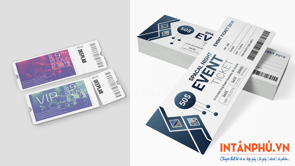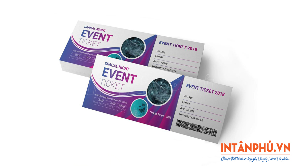 Sau đây là một số mẫu vé sự kiện, vé mời với thiết kế đẹp mắt, đa dạng kiểu dáng ấn tượng, in ấn chuyên nghiệp: