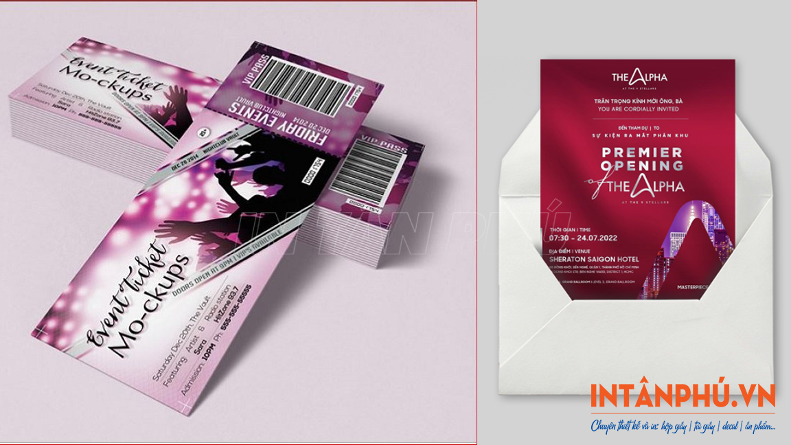 In vé sự kiện, vé mời là hạng mục in ấn không thể thiếu trong các chương trình ca nhạc, hội nghị, lễ hội, ra mắt sản phẩm hay sự kiện giải trí. Vé không chỉ giúp kiểm soát số lượng người tham dự mà còn góp phần thể hiện sự chuyên nghiệp, đẳng cấp của ban tổ chức.