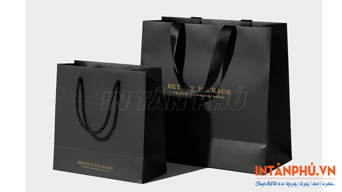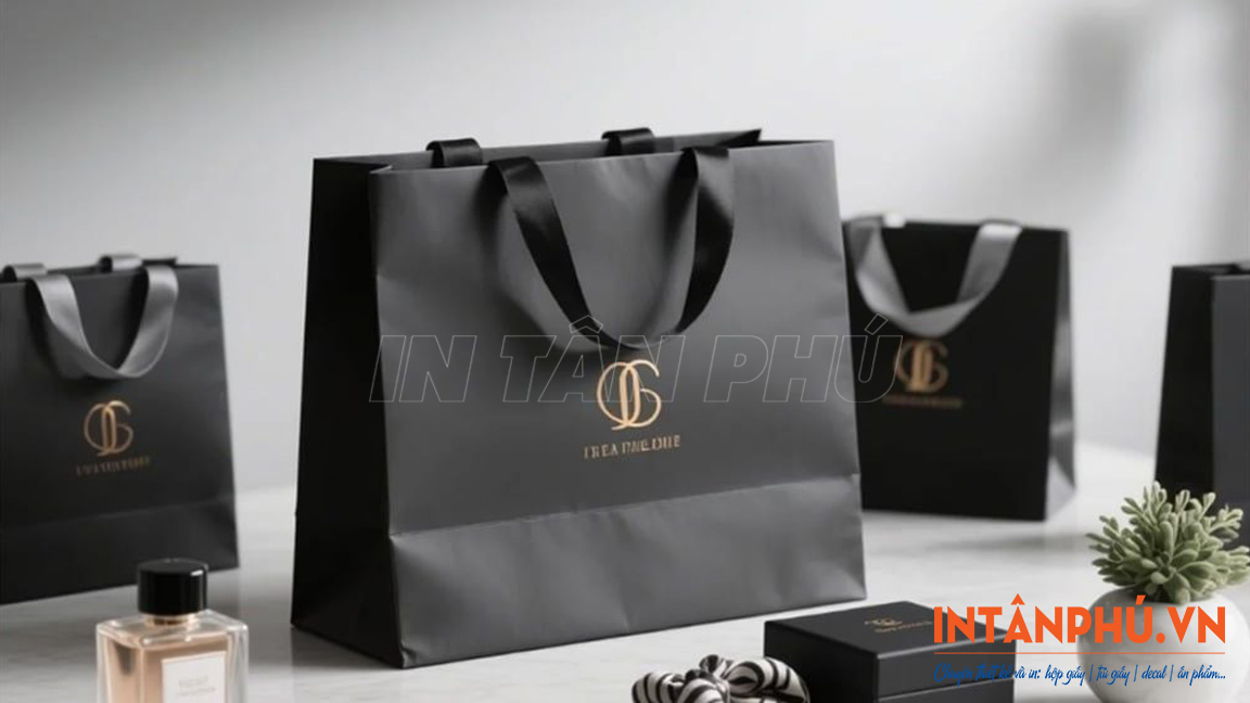 Dịch vụ in túi giấy đen in logo thương hiệu cao cấp, giá xưởng tại In Tân Phú